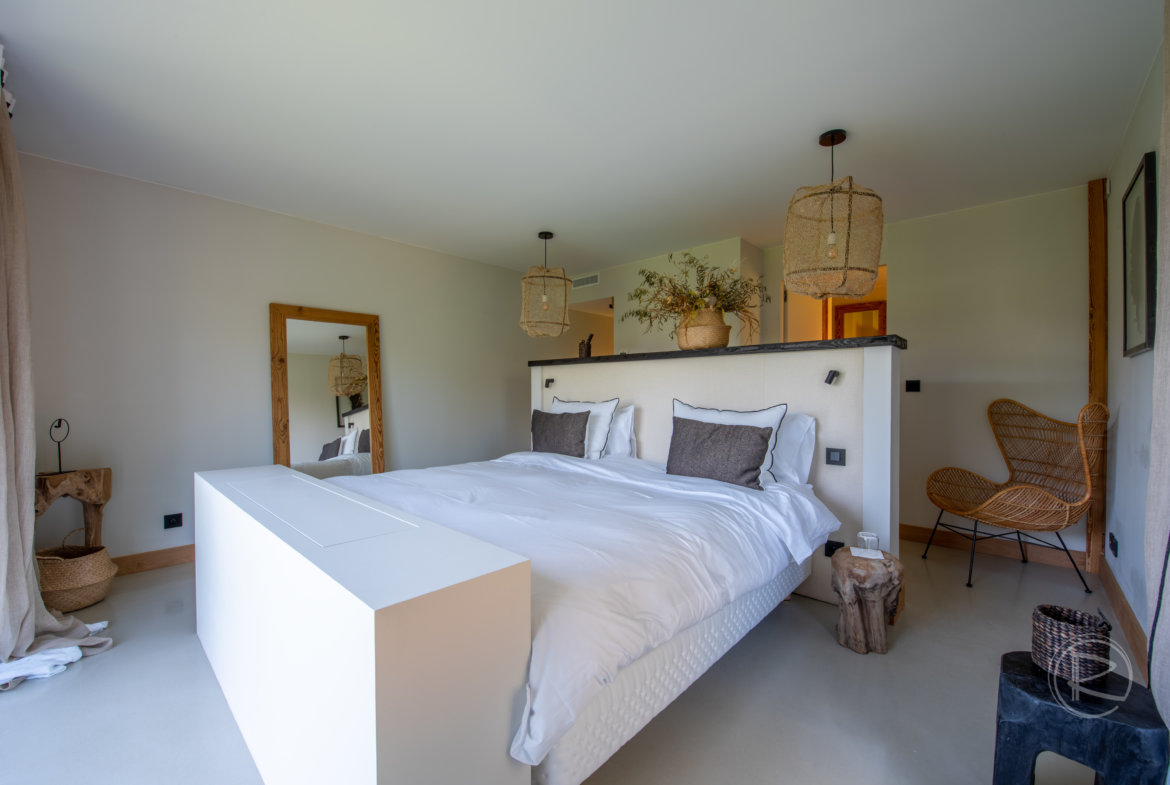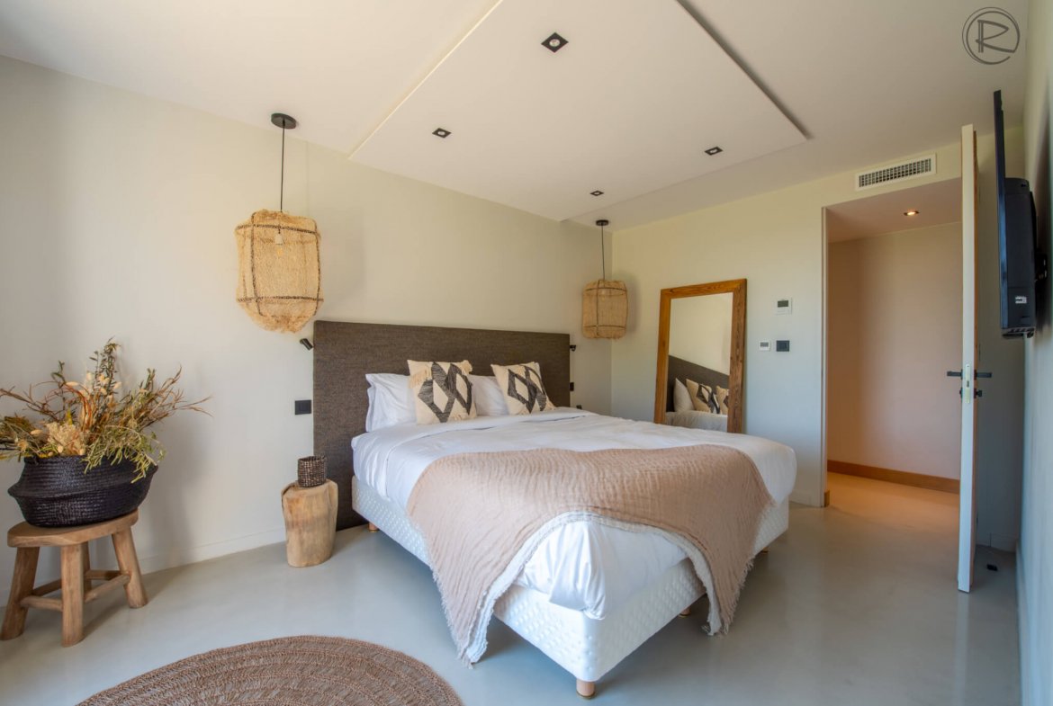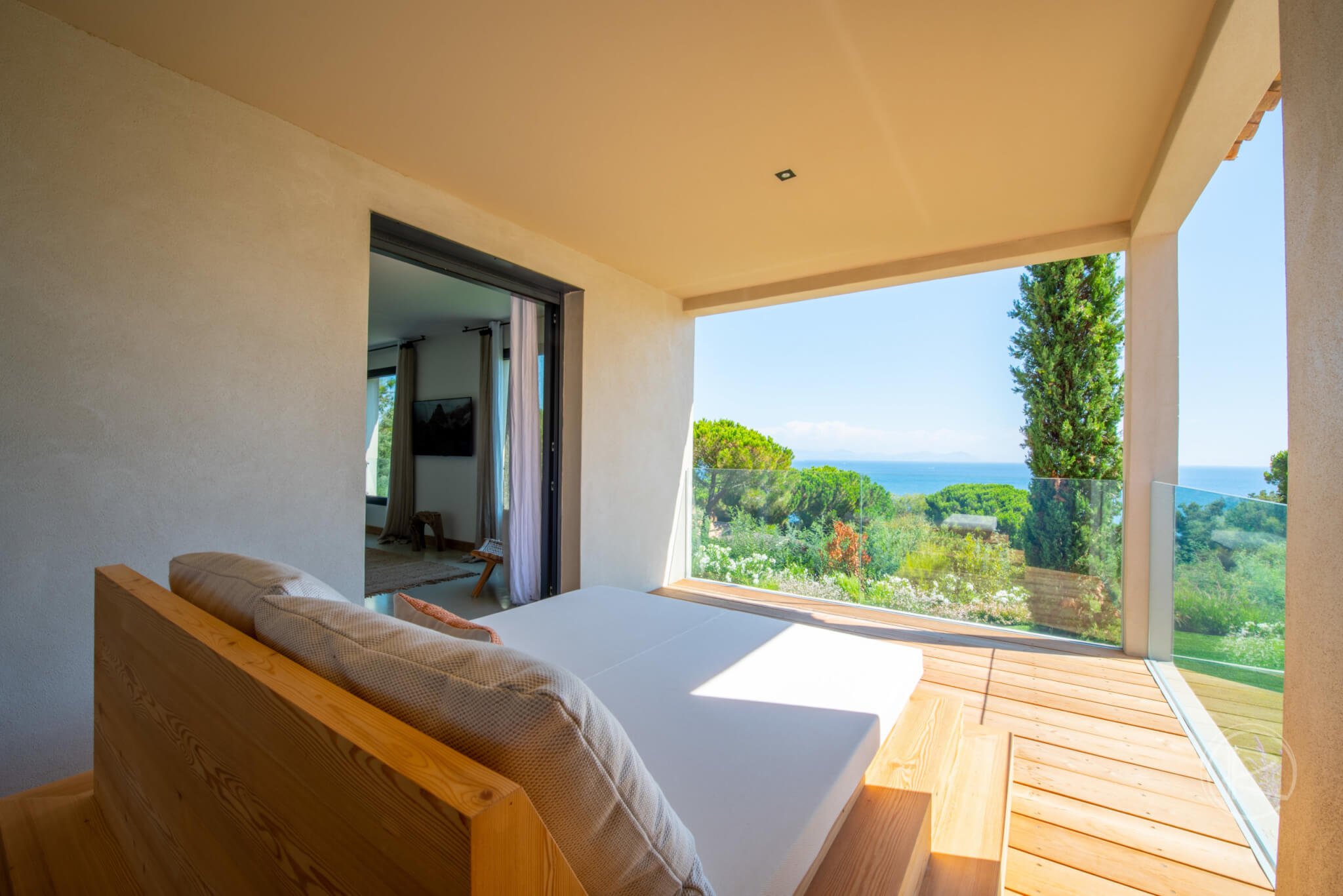 Exquisitely decorated throughout with cool white tones mixed with natural wood, this exceptional property offers a fabulous open plan kitchen, sitting and dining room with panoramic views, 5 delightful en suite bedrooms and a 45 m² guest suite. The first floor features an elegant 60 m² master suite with private terrace and breathtaking views as well as an office. The lower level offers 2 en suite staff bedrooms, a laundry room, staff kitchen and separate entrance.